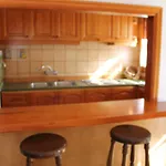 Rummet har byxpress, strykutrustning och mathörna. Ett badrum är utrustat med badkar och dusch.